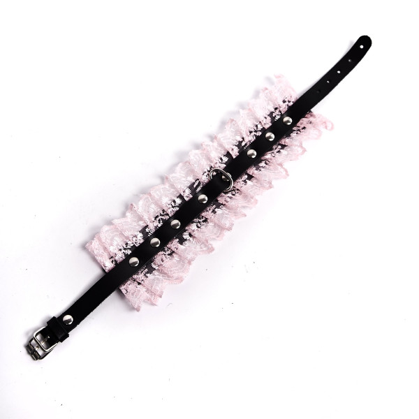 Ошейник выполнен из натуральной кожи и декорирован роскошным кружевом розового цвета! Сочетание кожи и кружева придает образу особенный шарм и выглядит мега провокационно!