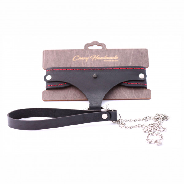 Ошейник фигурный + поводок "Crazy Handmade" черный, кожа